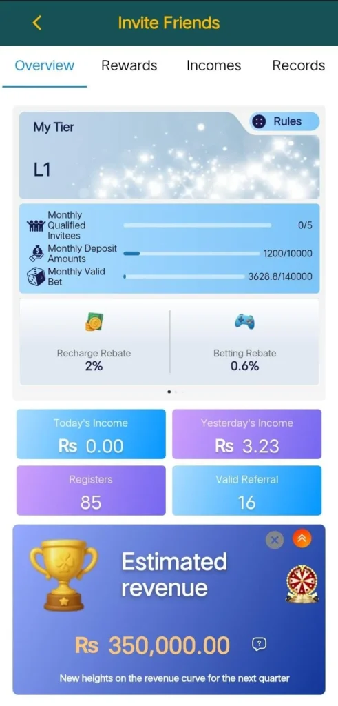 The minimum withdrawal amount usually ranges between Rs. 200 to Rs. 500, depending on your selected payment method. Make sure your account is verified and your wallet balance meets the required amount before withdrawing.