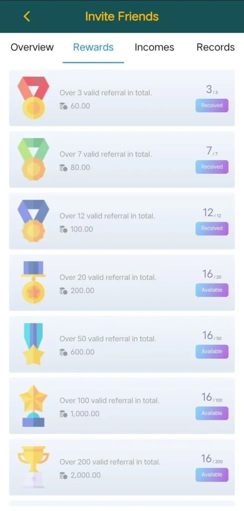 Invite friends daily using your referral link. It’s a passive way to build your balance without spending or playing.